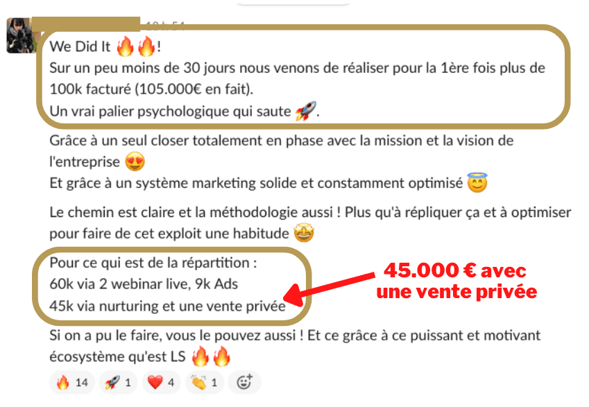 Pourtant 5 mois plus tard, elle fait son premier mois a 65K euros.